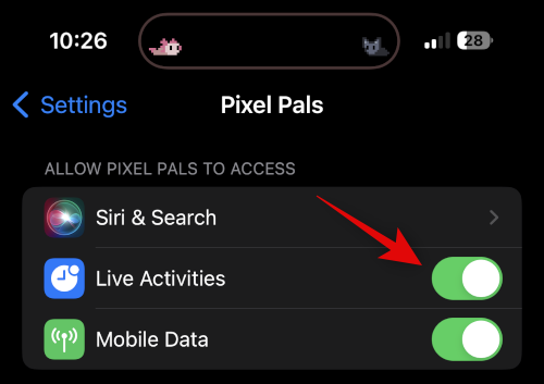 Open the Settings app and tap the app for which you wish to turn on Live Activities. Let’s take a look at Pixel Pals for this example.