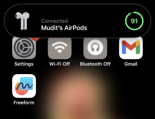 Battery levels will be indicated by a circular indicator which will be filled with green depending on the current battery life of your Airpods. The hidden feature here is that you can tap and hold on Dynamic Island while the battery life is visible to view your Airpods name and numerical battery levels.