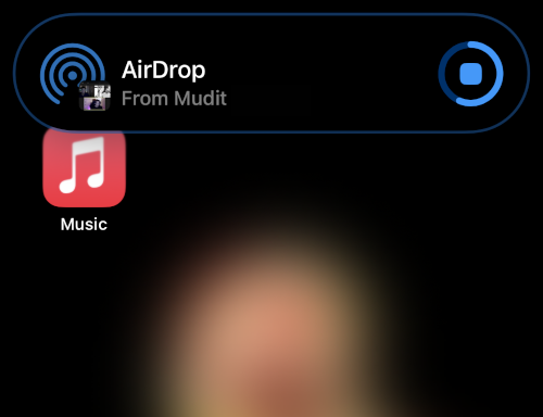When you tap and hold on the Airdrop transfer, you get details about the transfer, including the device sending you the file as well as the name of the file. You also get a larger circular representation showing you the transfer progress and a stop icon to help you stop the transfer whenever needed. Here’s what the Airdrop expanded view looks like in Dynamic Island.
