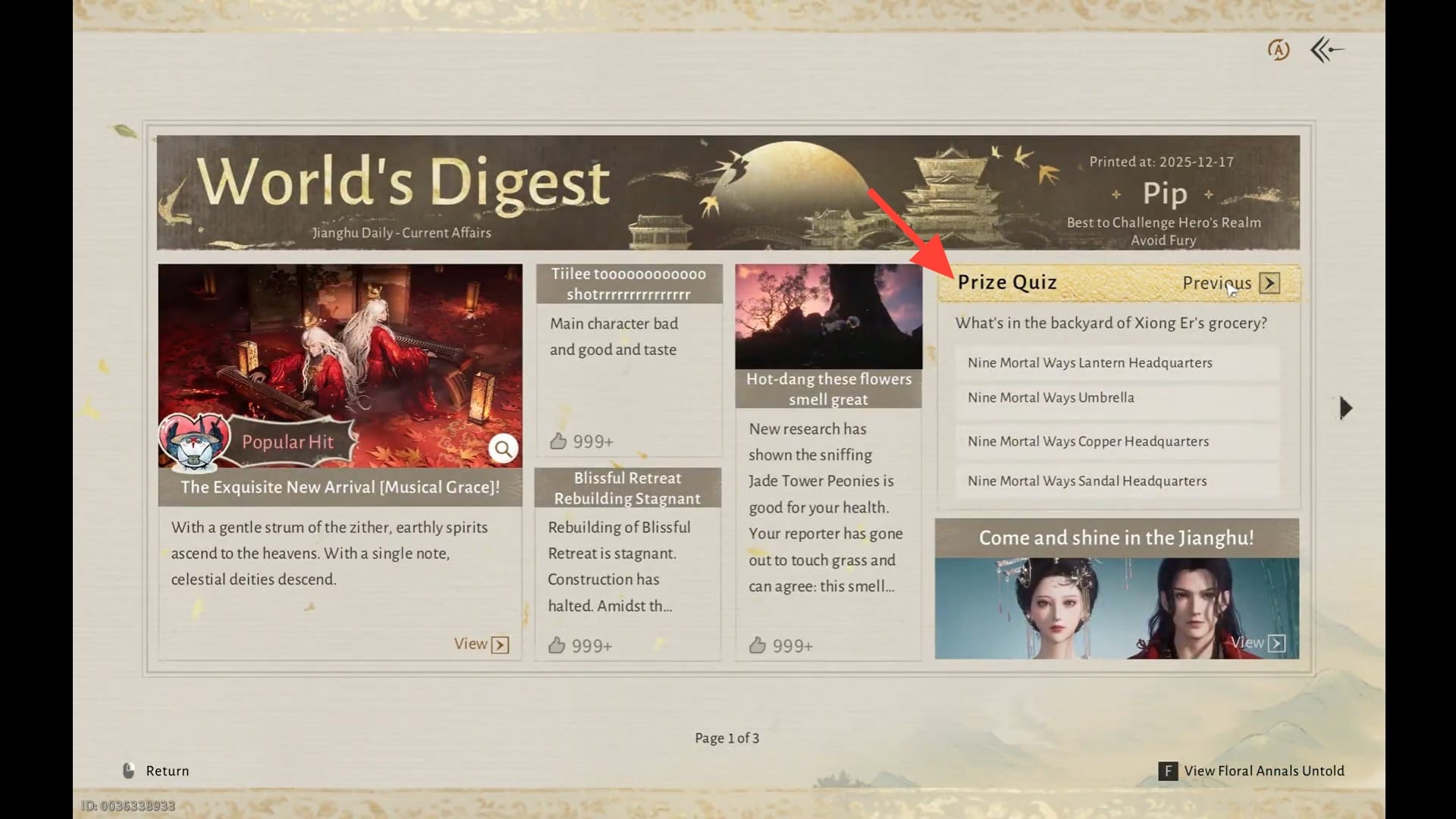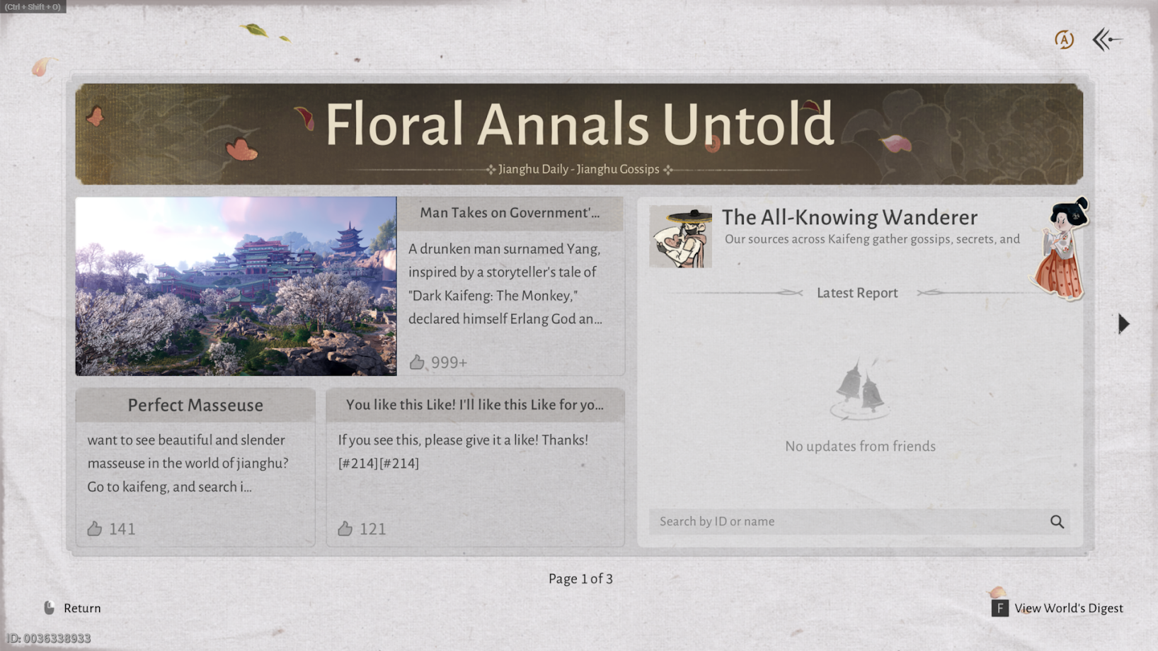 Eastern Herald also links directly to Floral Annals Untold, a system that collects gossip, rumors, and social stories from across Jianghu. These entries expand the game’s narrative and sometimes hint at hidden interactions, side events, or character relationships.