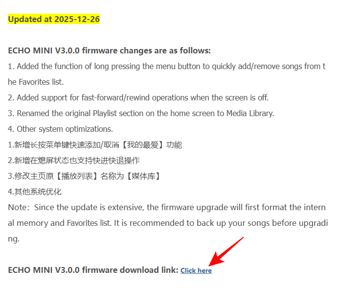 - Download and unzip the v3.0.0 firmware package from the official Echo Mini firmware page (look for “ECHO MINI V3.0.0 firmware download”).