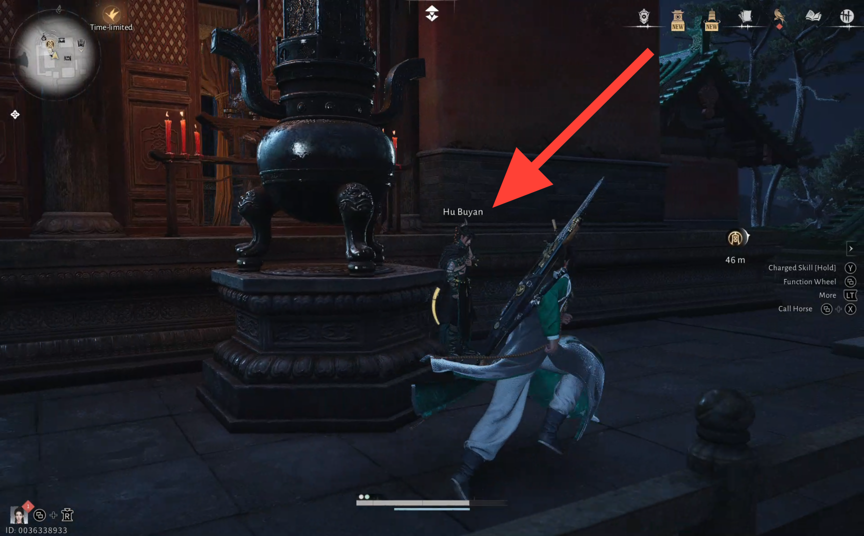 To begin this Wandering Tale, go to the marked spot in Ethereal Mountain during the "Yin" hour and talk to Hu Buyan.