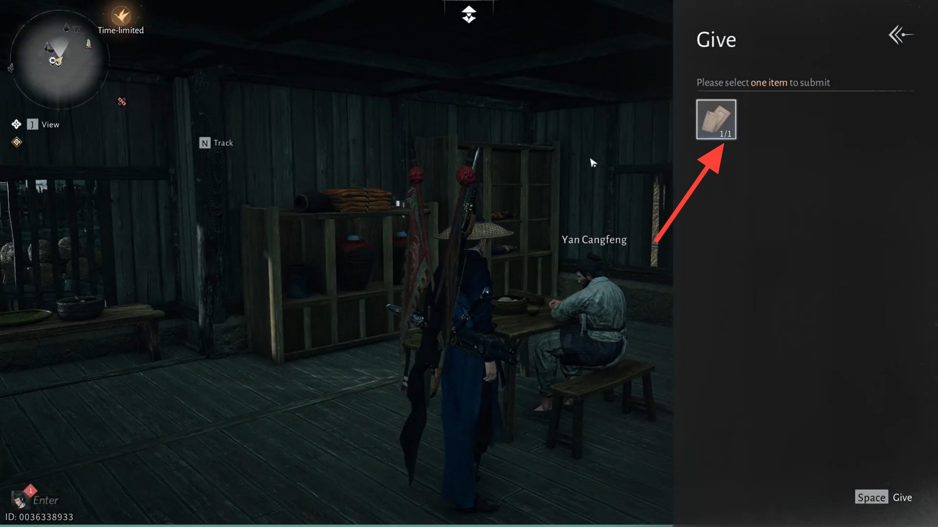 Head back to the central hut in Harvestfall Village and wait for Yan Cangfeng to reappear. When he does, hand him the letter.