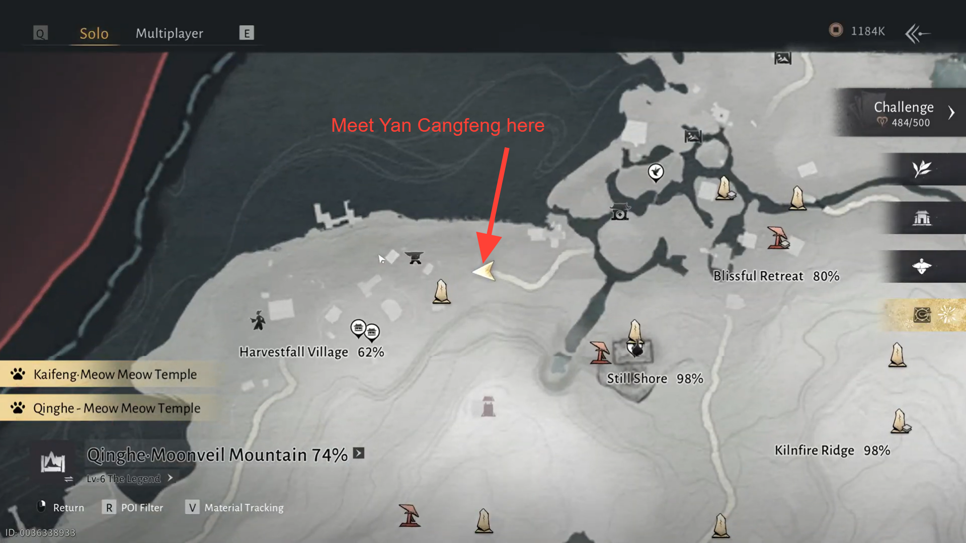 The Wandering Tale begins in Harvestfall Village. From there, you’ll travel to Jadebrook Mountain in Halo Peak, then work your way across connected regions such as Moonveil Mountain before returning to finish the tale.