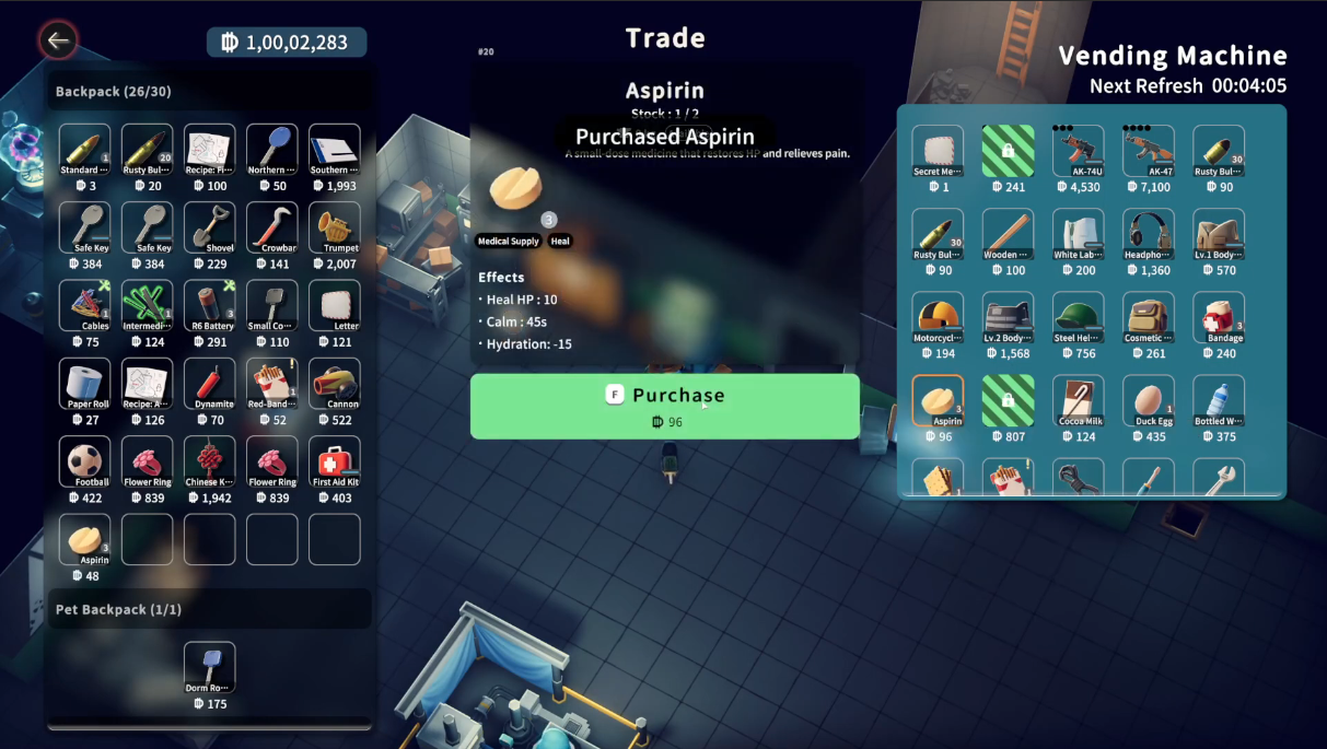 You can purchase Aspirin from the Vending Machine.