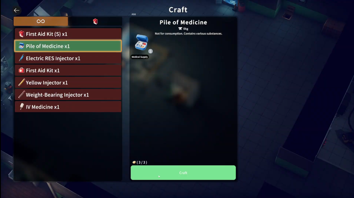 Go back to the Medic Station and click on Craft.