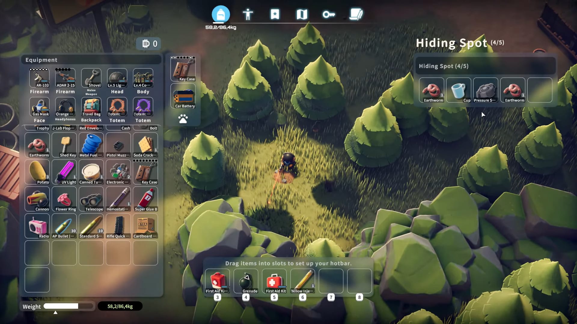 | Scavenger camp | Backpacks, clothes piles, weapon attachments | Check duck capacity |