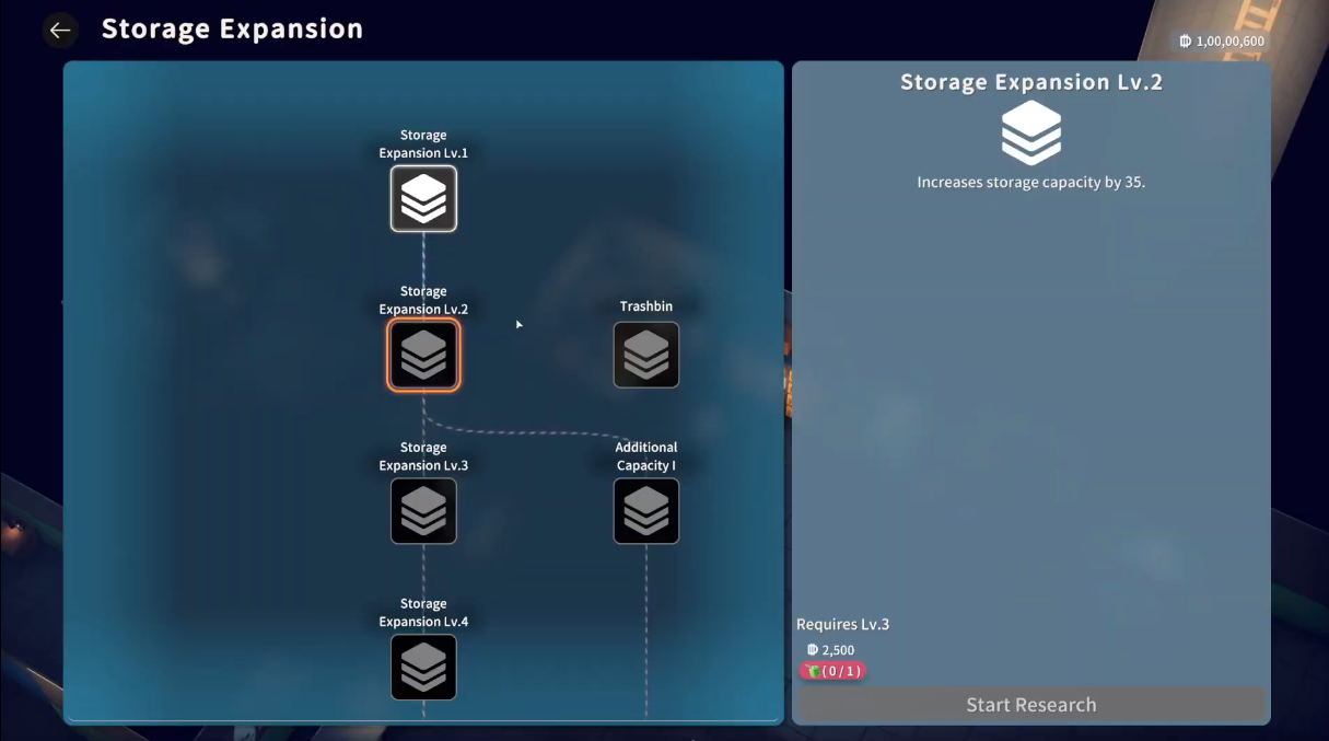 "You've gathered quite a few items, and space is running low. Time to expand the warehouse."