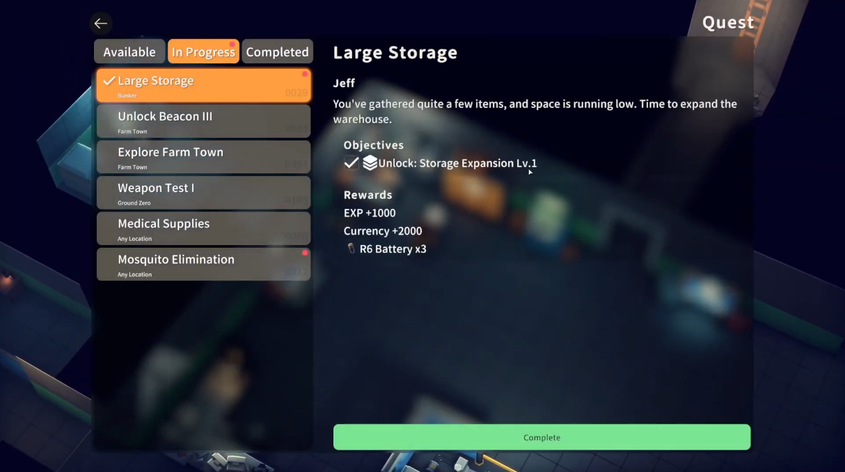 After selecting Storage Expansion Lv. 1, go back to Quest and click on complete.