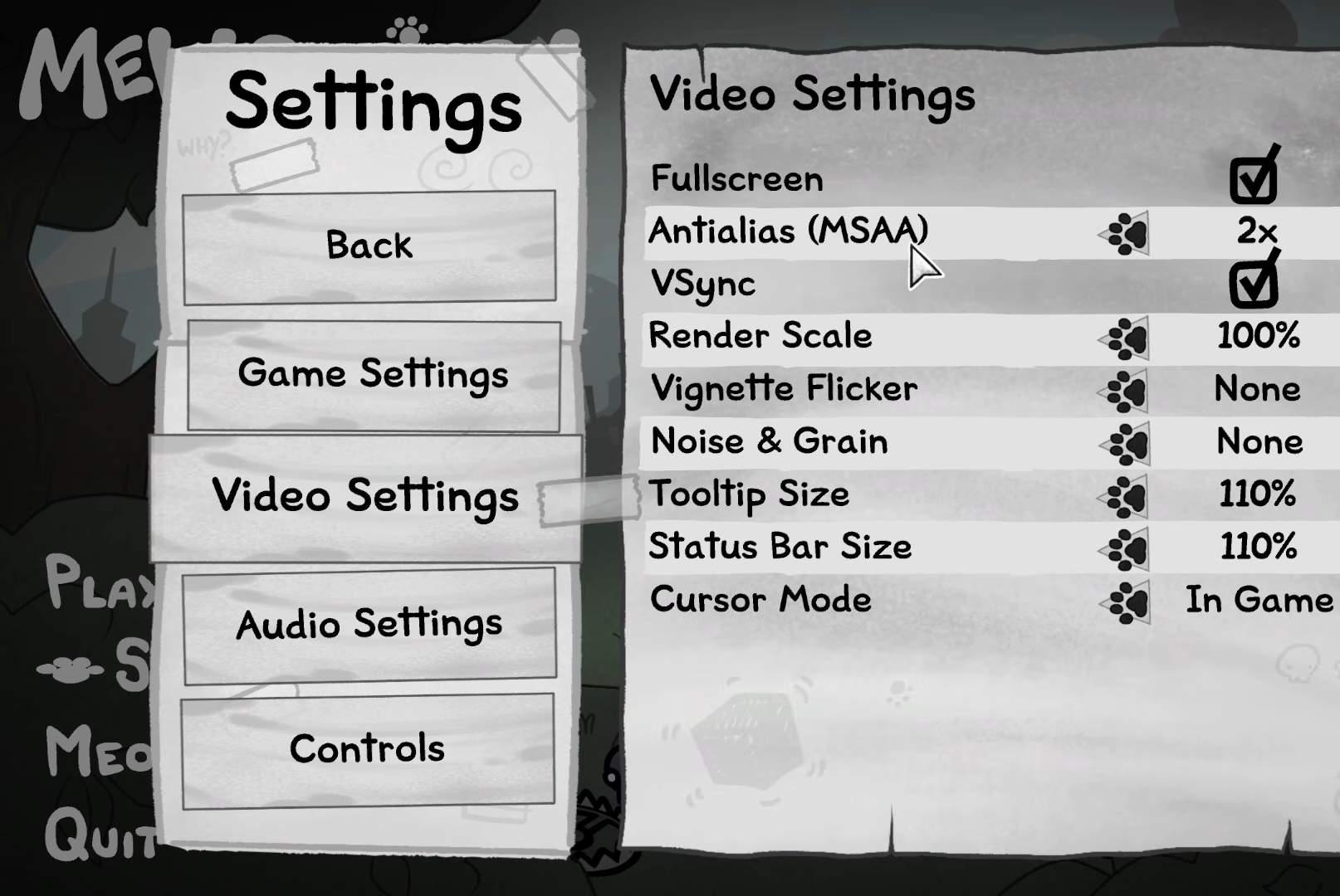 Select Noise & Grain and drop to No Hair, No Dust, or None. This cleans up the gritty film look, making cats and environments pop without performance hits.