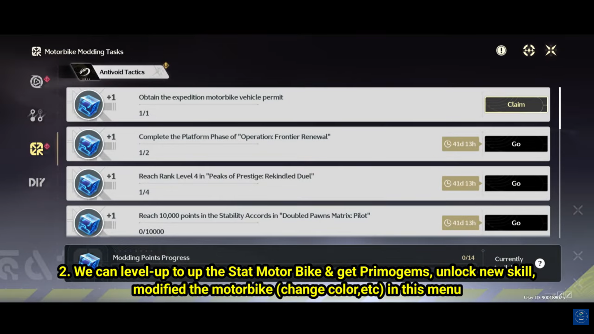 - Earn modding points from permanent/time-limited tasks (e.g., Peaks of Prestige rank 4, exploration).