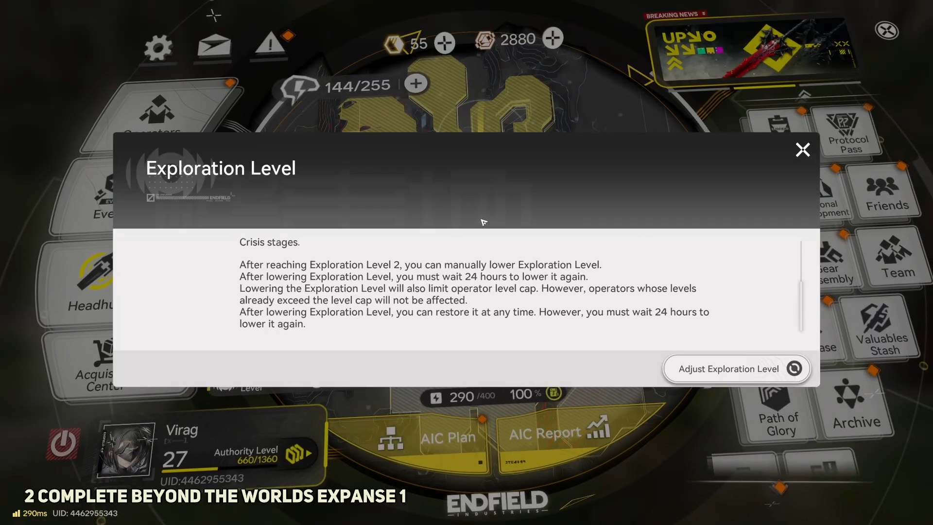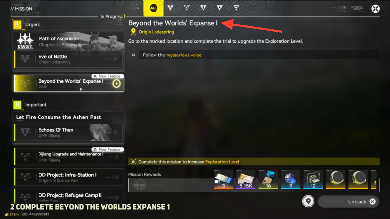 Step 1: Confirm current Exploration Level and active main mission