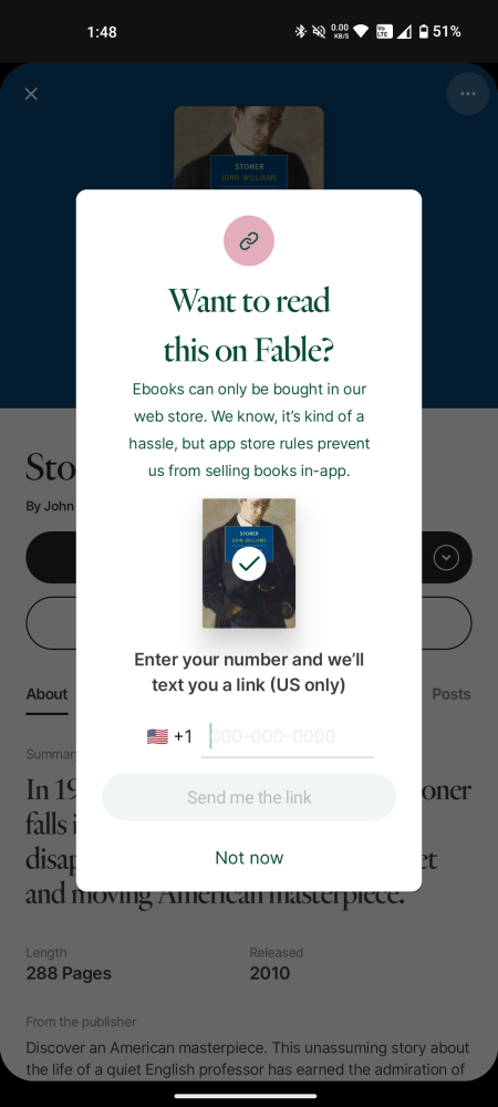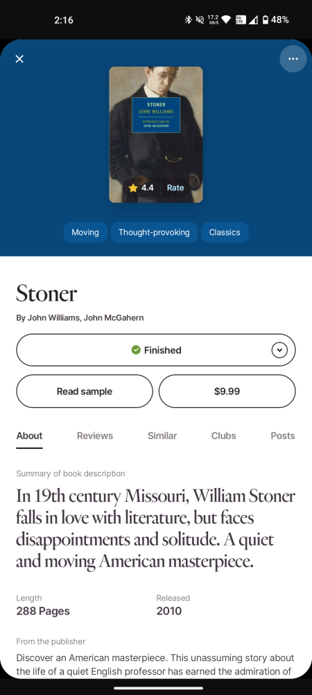Unlike Goodreads, Fable lets you purchase eBooks and read on the app. Even though you don’t really buy on the app – you’re sent an email with a link to purchase the book on their website – the book syncs and ultimately ends up in your library so you can read on the Fable app itself. The only downside here is that you can’t send the book to another platform, such as a Kindle.