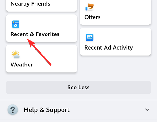Alternatively, you may get an option called ‘Recent & Favorites’ under Settings after you tap the ‘See more’ button, as shown below. In that case, tap the ‘Recent & Favorites’ button.