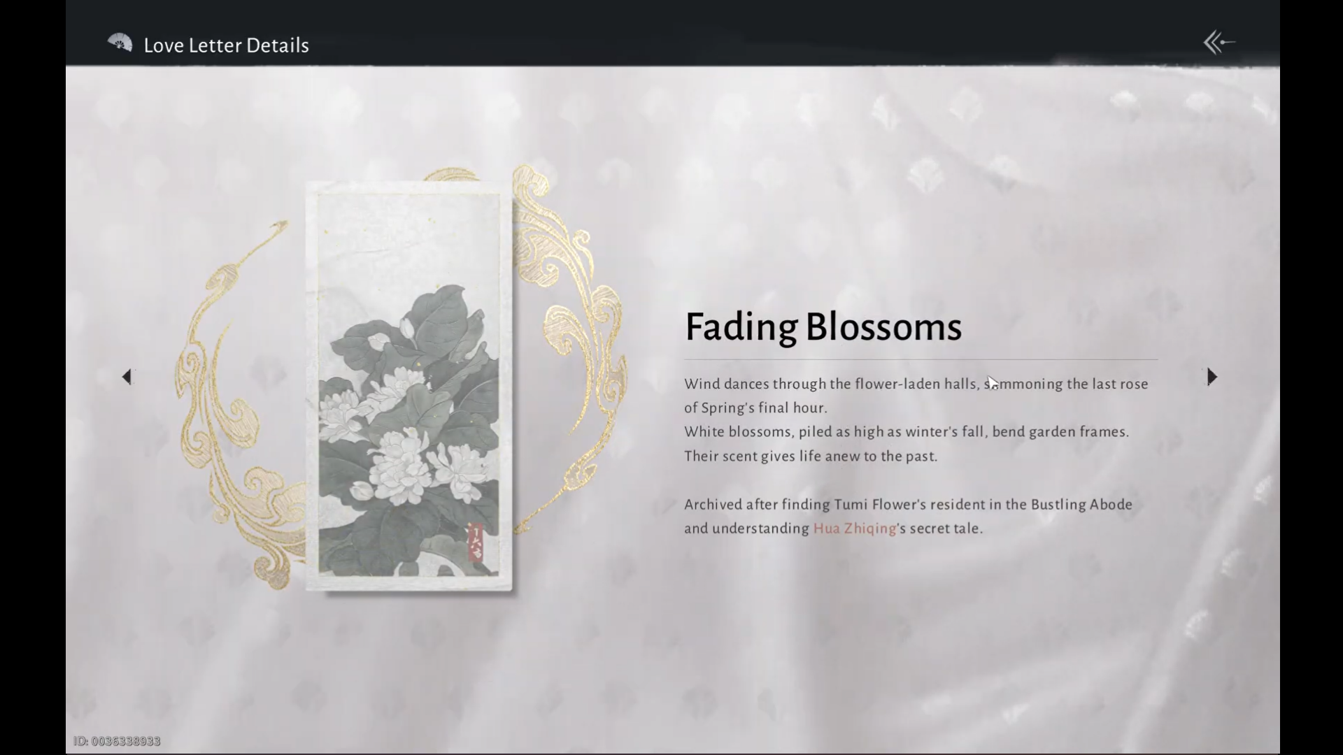 That concludes the process for collecting the Fading Blossoms love letter. This beautifully written message deepens the mystery surrounding Hua Zhiqing and hints at future encounters. If this guide helped you secure the item or you’d like assistance with more love letters and wandering tales, feel free to reach out—your feedback helps keep these guides improving!