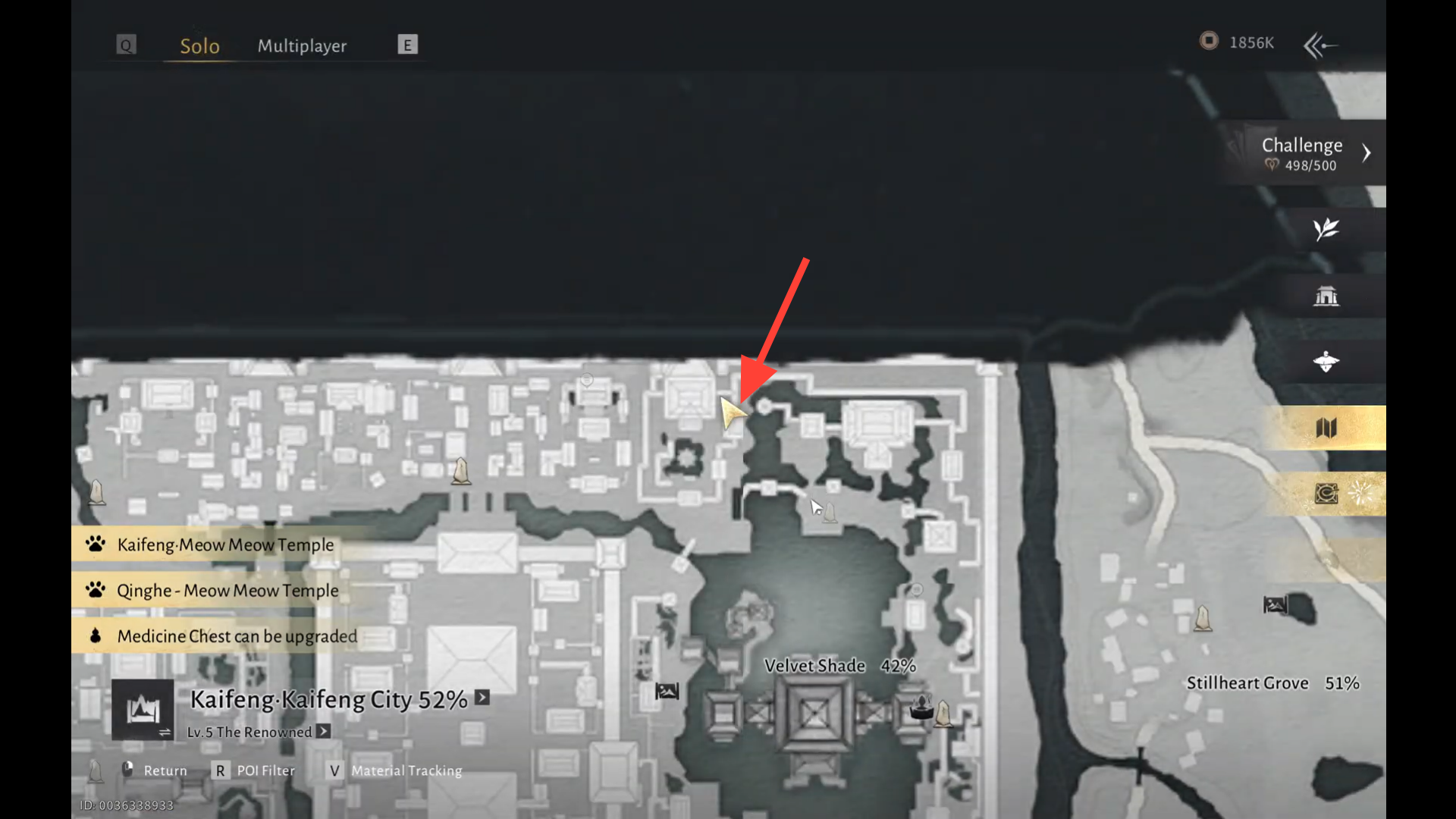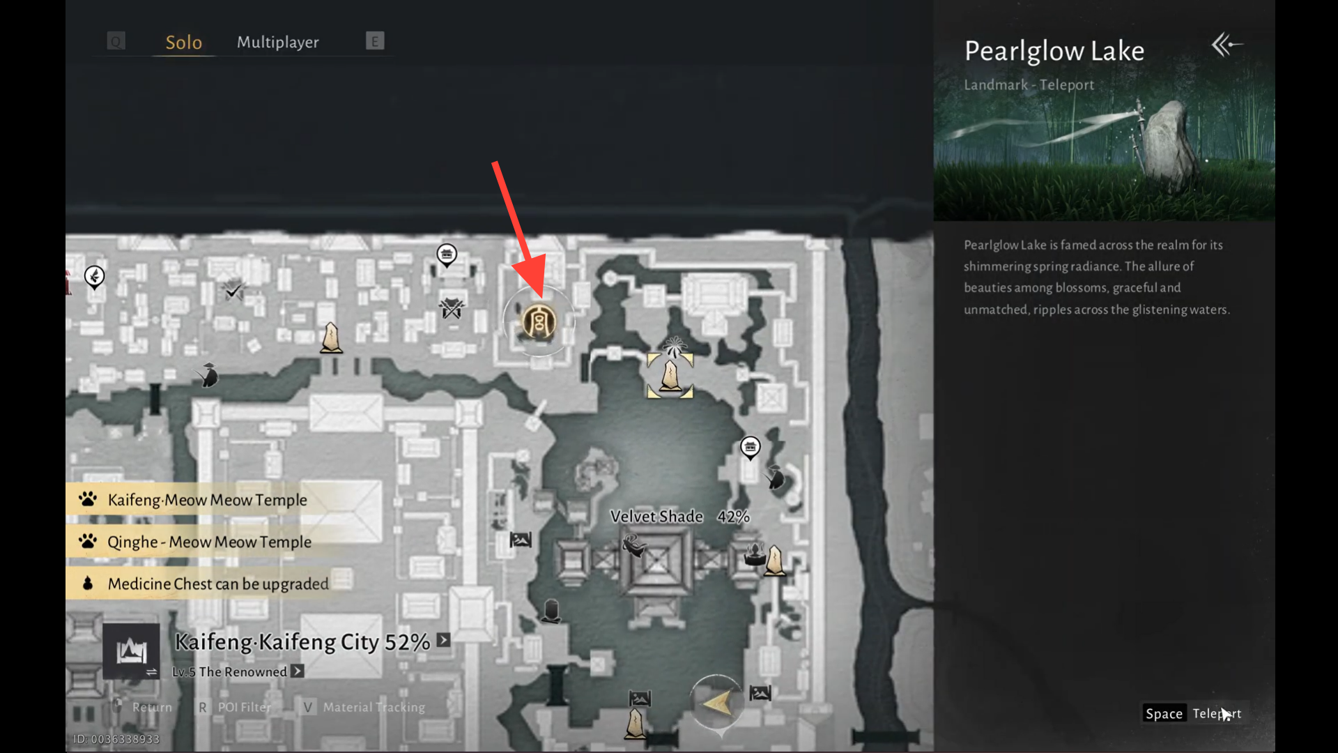 Start at Pearlglow Lake boundary stone and make your way west to reach the Bustling Abode area of Velvet Shade in Kaifeng.