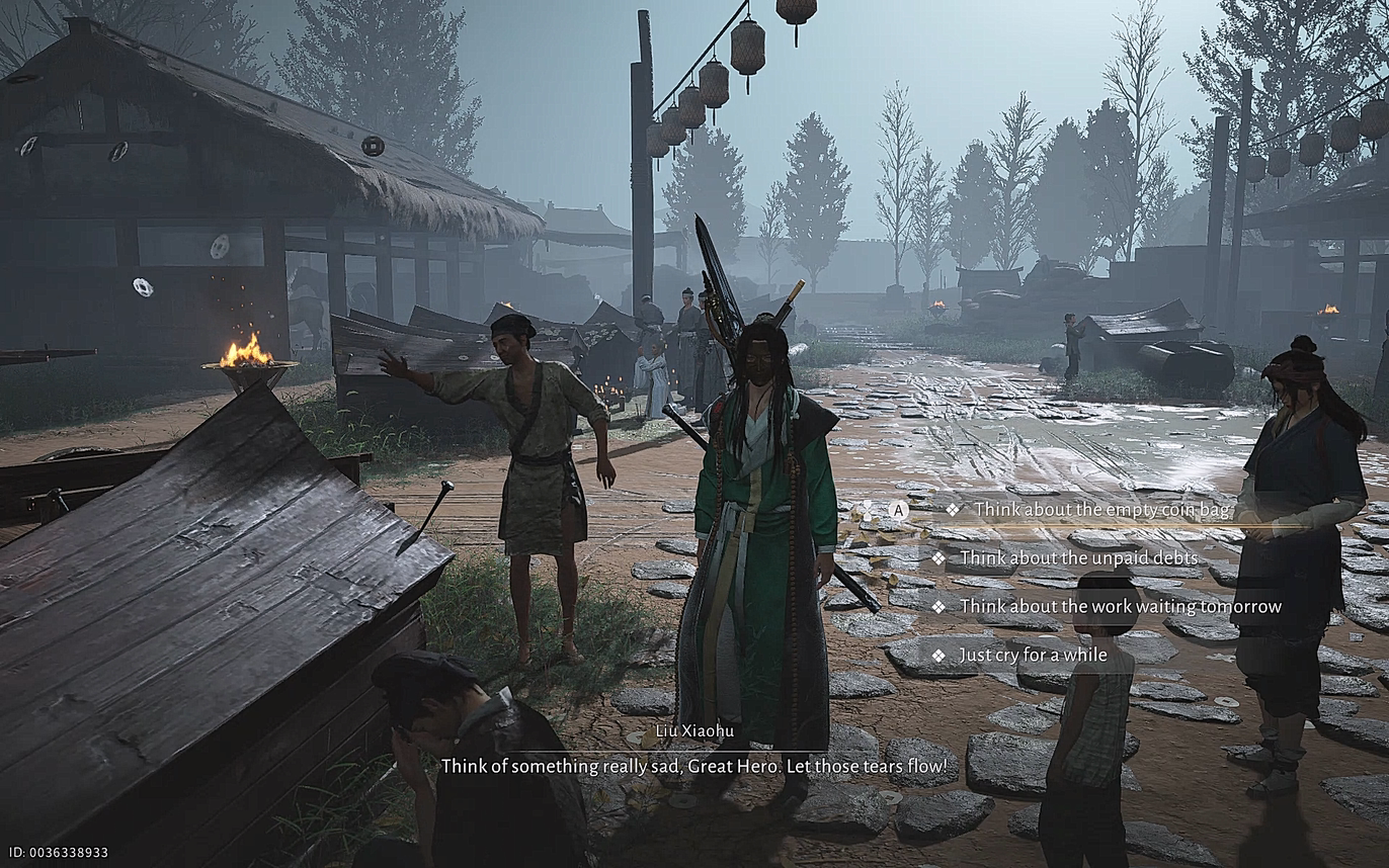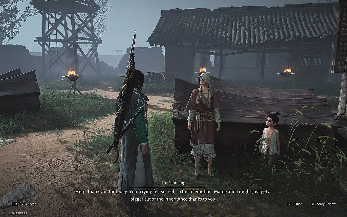 Go to Liu Nanniang and Liu Xiaohu on the left side of the temple. The mother will thank you for the mourning process. Converse with her to complete the quest.
