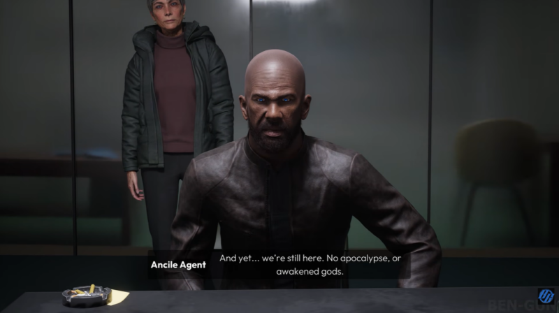 The story transitions into a psychological evaluation scenario, where Agent Williams questions the validity of the events described. This framing introduces doubt about everything that occurred.