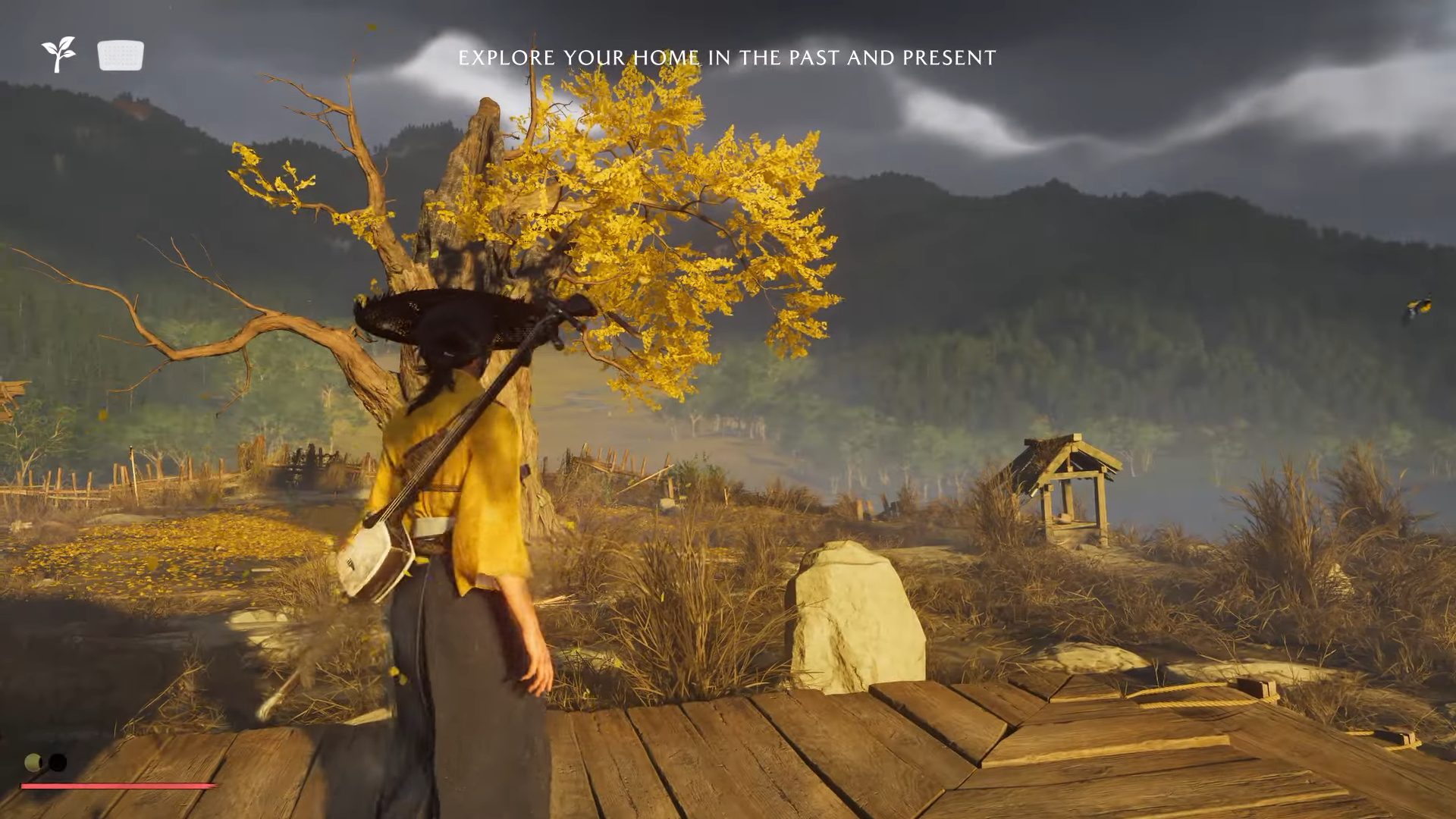 Back in the present, explore your house again. You’ll notice several sumi-e paintings scattered across the floor. Interact with these to collect and observe them. They represent remnants of your family’s artistry and act as anchors between the past and present timelines.