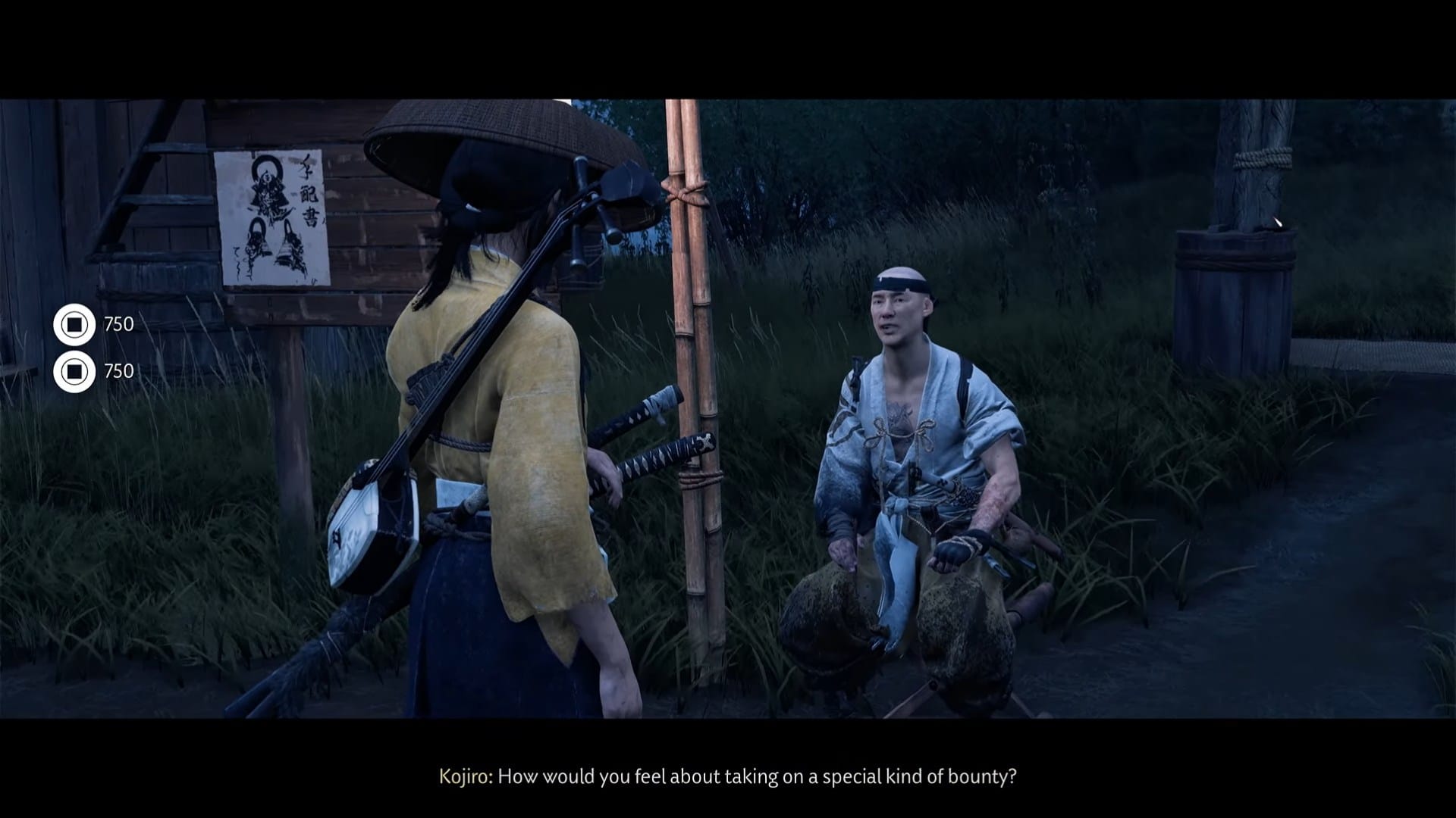 Upon winning the duel, a final cutscene plays where both characters share a song. For completion, you earn the Bounty Master Armor, Bounty Master Headband, and 1,500 coins, making this bounty among the most rewarding in the game. Return to Kojiro at Yotei’s Shadow Inn to finalize and claim your rewards.