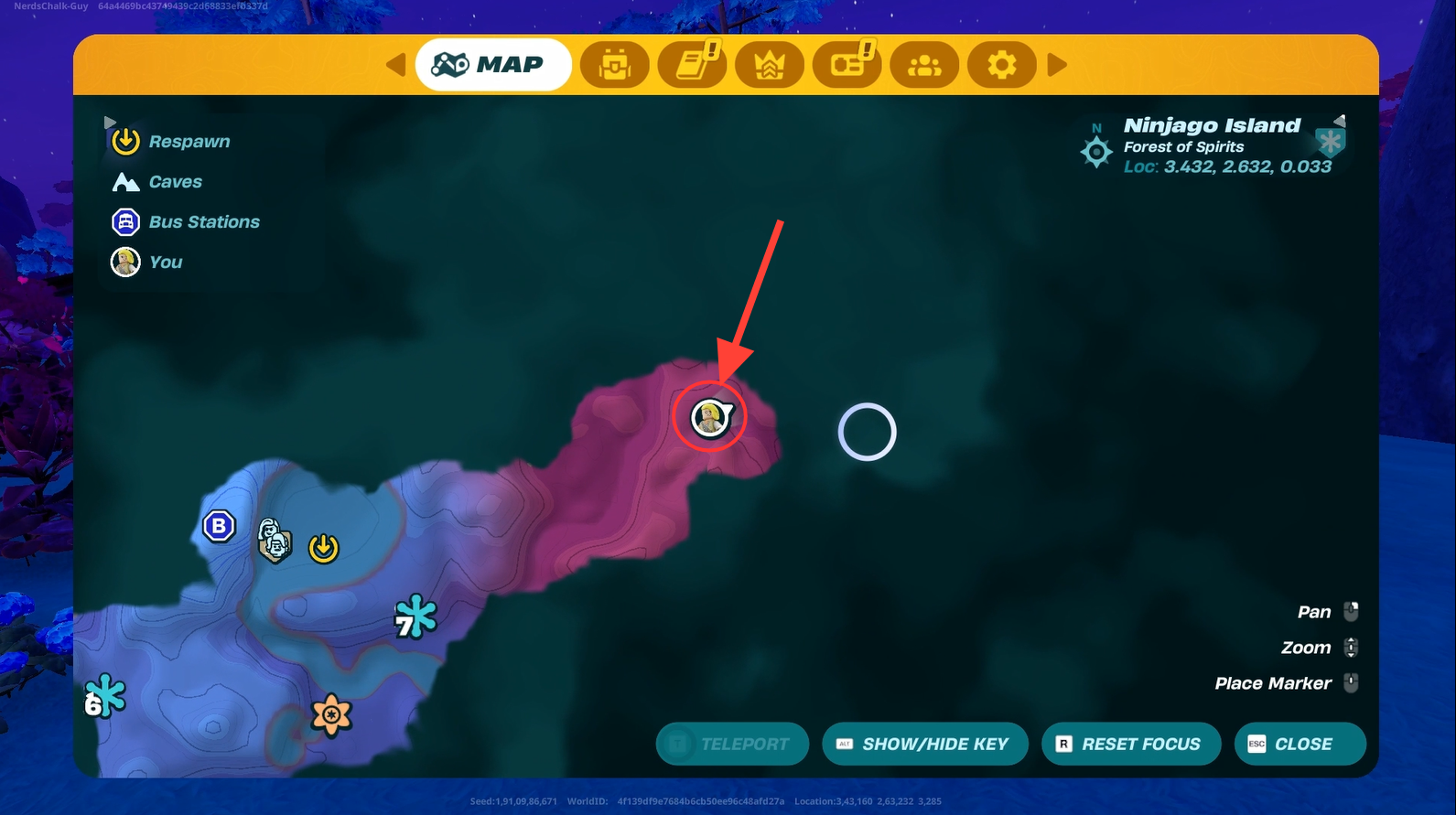 Unlike many smaller enemies, the Fire Dragon does not have a fixed small point on the map visible at all times, like resource spots. The Forest of Spirits on Ninjago Island is a possible location to encounter the Dragon in LEGO Fortnite Odyssey. This area contains dense foliage, uneven elevation, and high-threat enemy activity, all of which align with conditions where elite elemental enemies can appear.