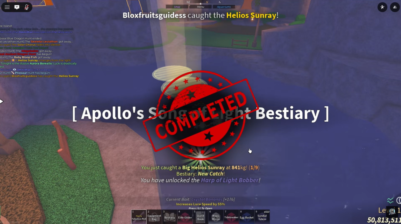 Once completed, the Helio Sunray exotic fish appears, marking the final challenge of the entire sequence.