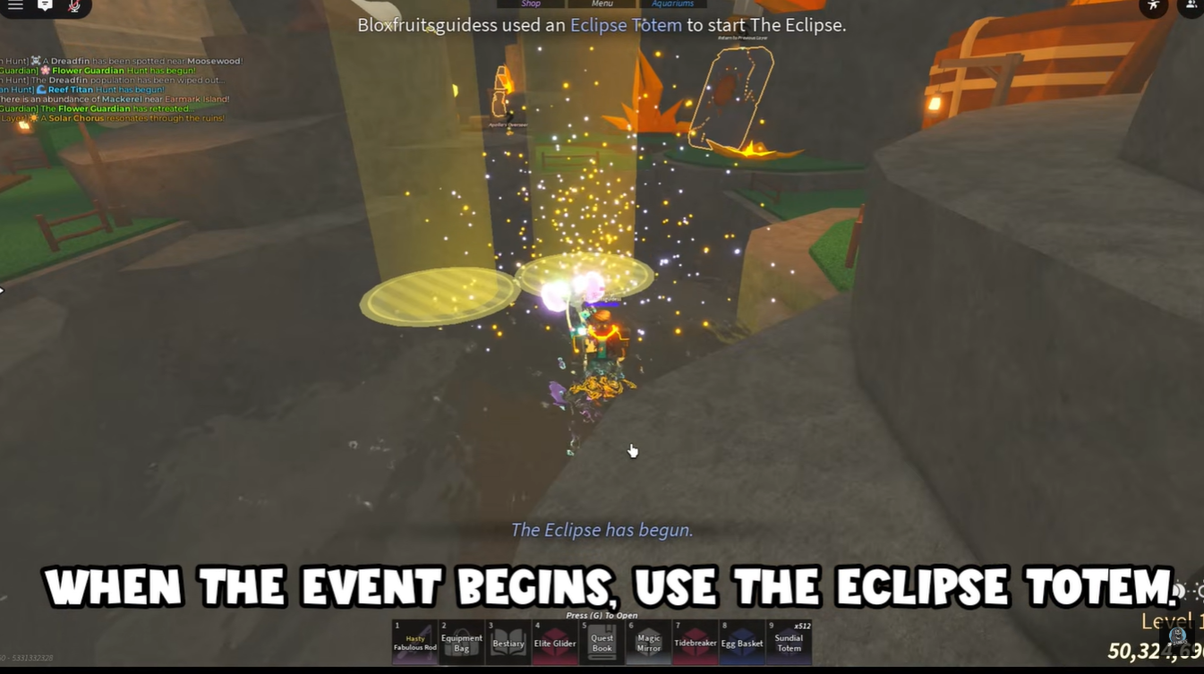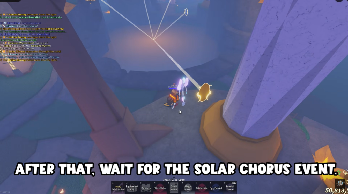 The Solar Chorus event is a timed sequence that does not begin immediately, requiring patience. Once active, you must use the Eclipse Totem and interact with eight stone tablets.