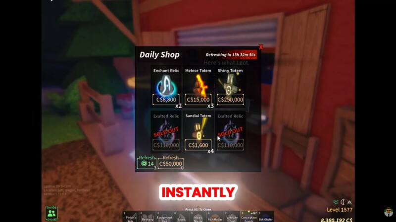 The most straightforward method is through the Daily Shop. This shop refreshes on a timed rotation and pulls items from a large pool. The Random Rod has only a 0.16% chance of appearing in any given refresh cycle. That percentage is extremely low, meaning you could check dozens or even hundreds of refreshes without seeing it.