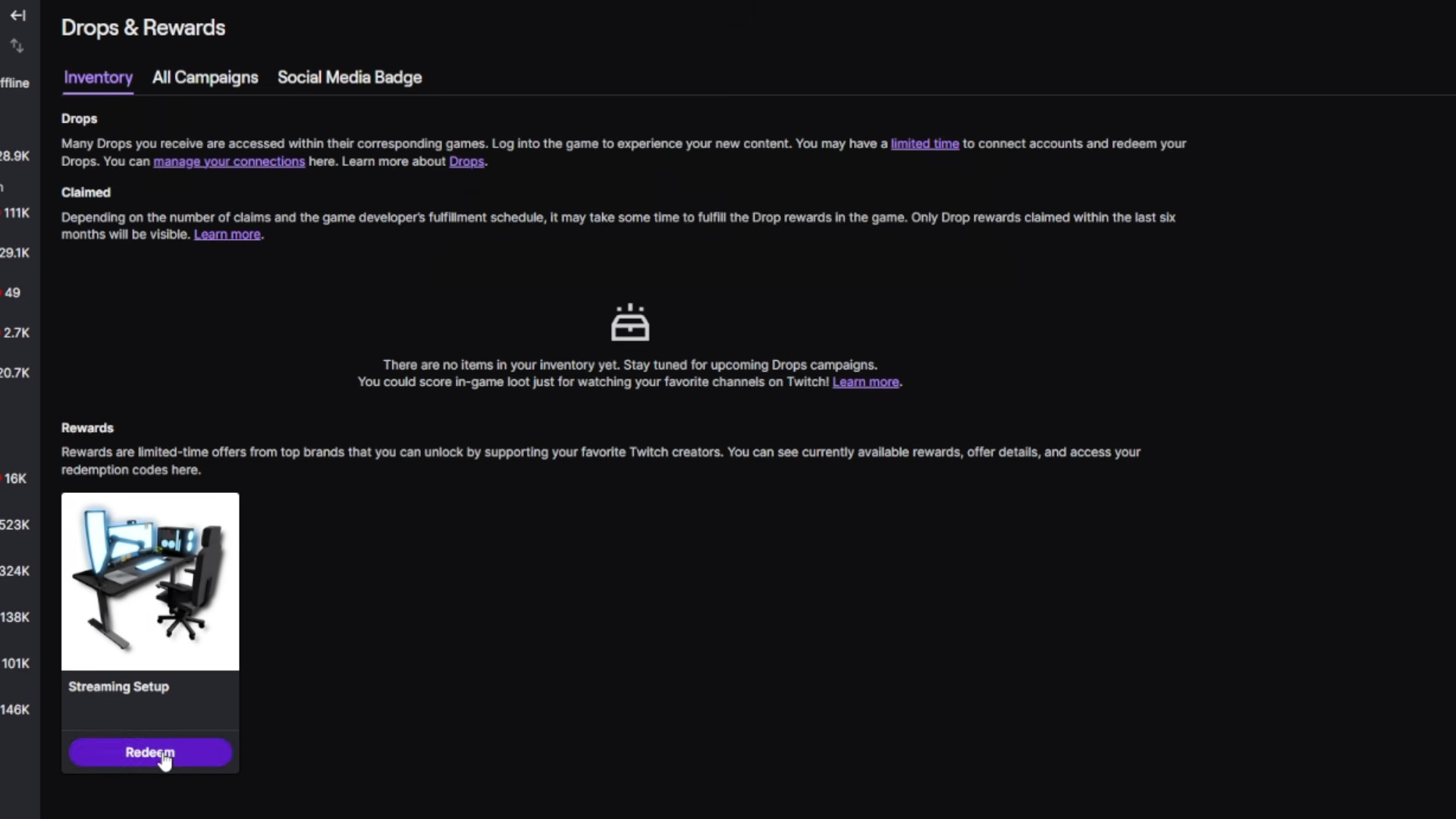 - Claim the reward from your Twitch drops inventory to get a redeem code.