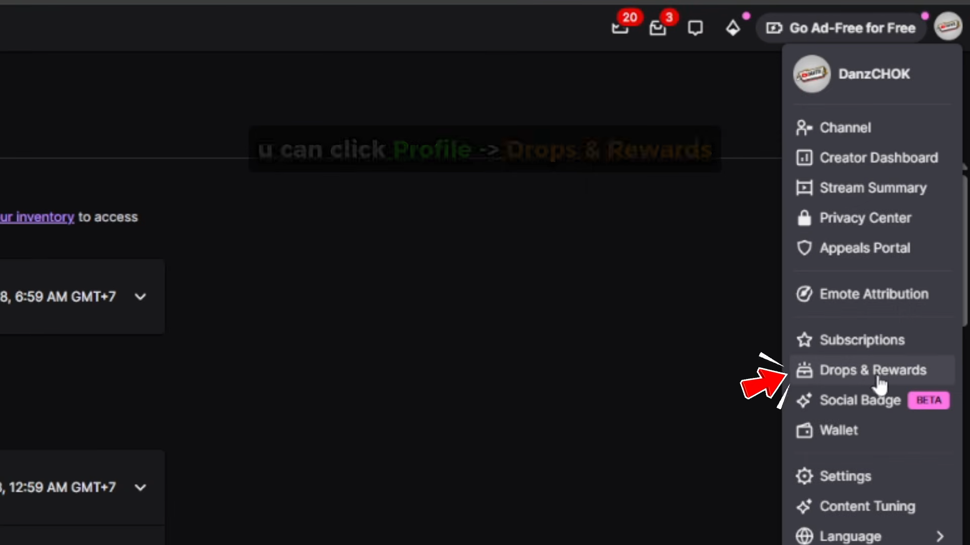 After 1 hour, visit your Twitch drops inventory at twitch.tv/drops/inventory.