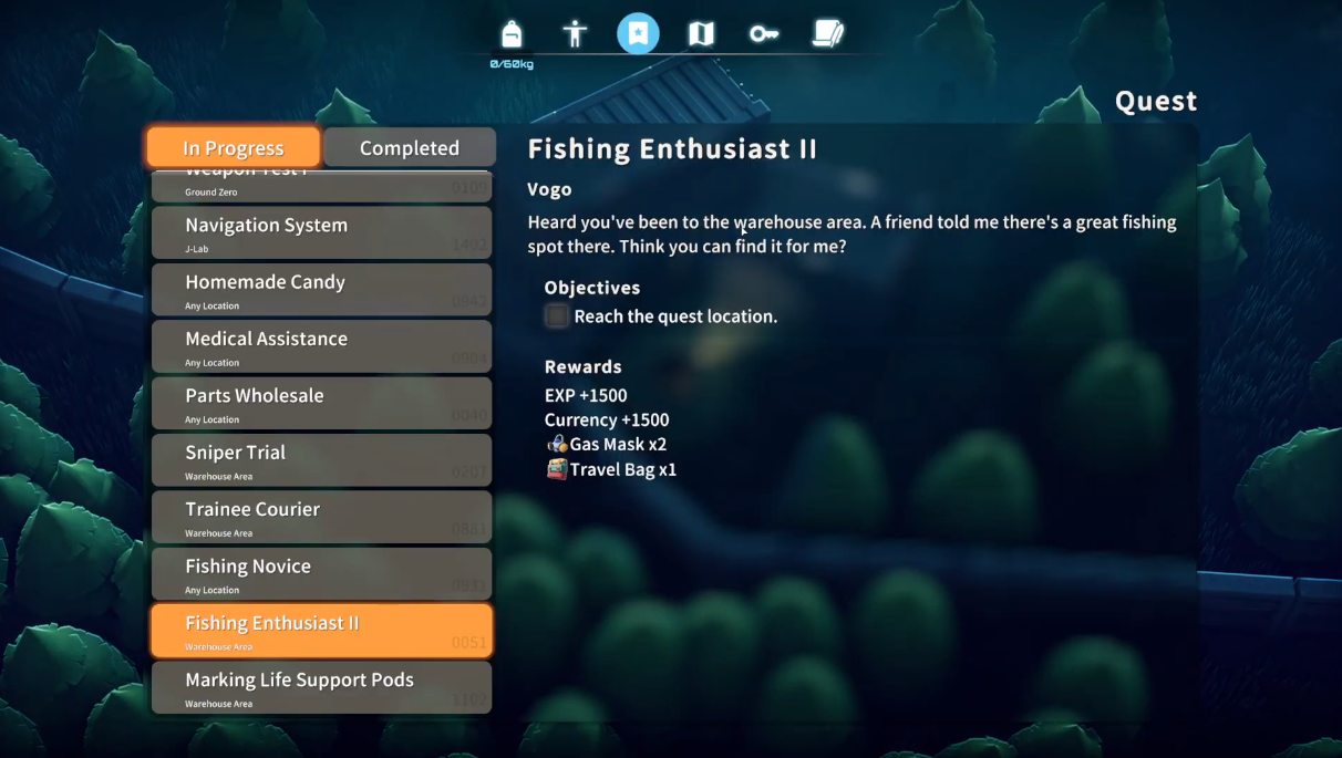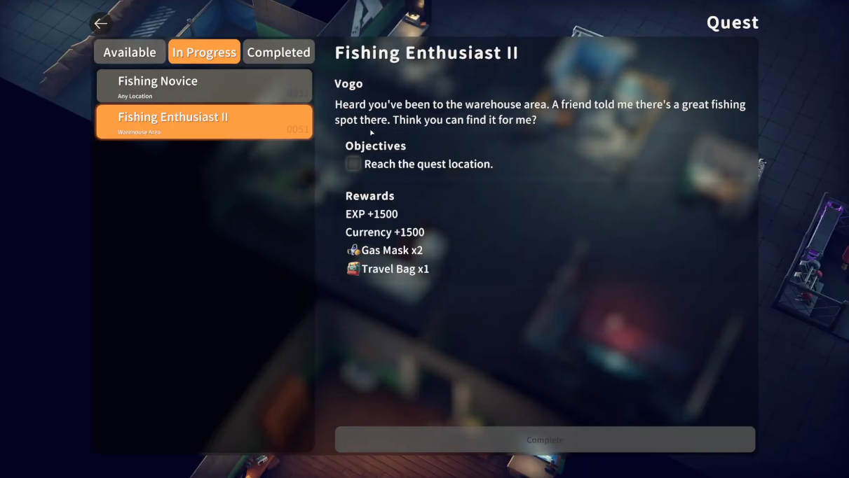 The Fishing Enthusiast II quest in Escape from Duckov is given by Vogo. It takes place in the Warehouse Area, where you must locate a hidden fishing spot. Completing this quest grants XP, currency, and useful survival gear.
