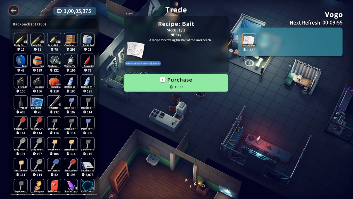 After building the kitchen, interact with Vogo, Press F on trade and purchase the Bait.