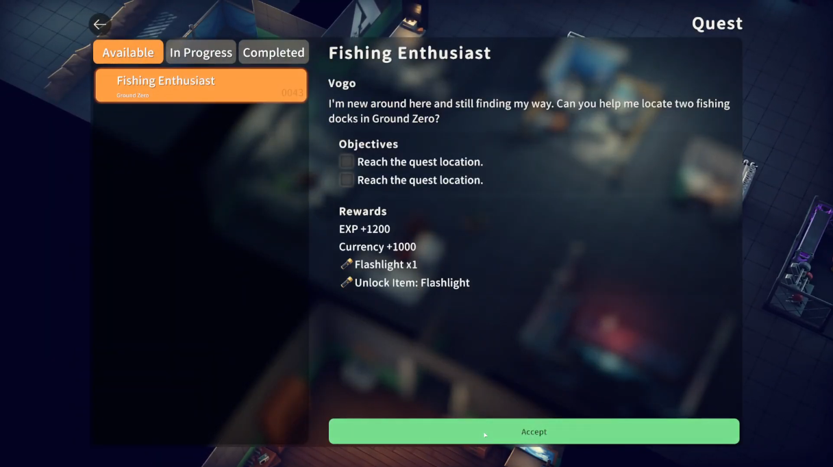 You will see Fishing Enthusiast Quest is now available to take, click on Accept.