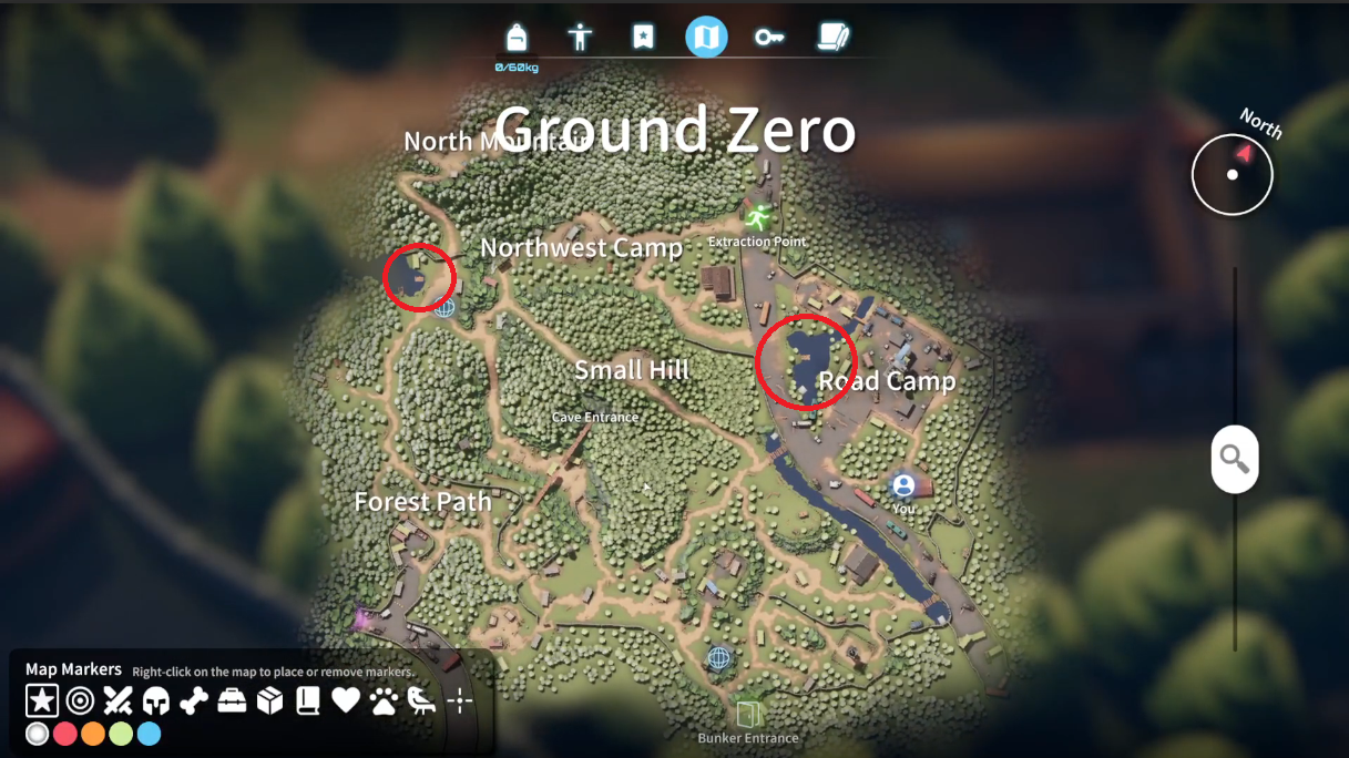 Lake Areas – Located near the Northwest Camp and the Road Camp