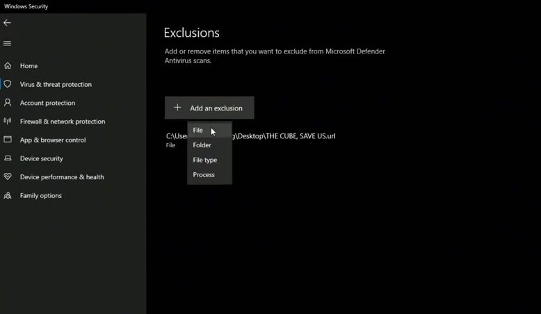 Under Exclusions, click Add or remove exclusions.