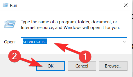 First press the Windows + R button on your keyboard to open the Run program. Then, type in services.msc and click on OK to launch the service management window.