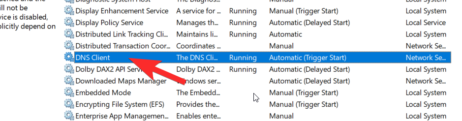 Next, you will find yourself in the Service Manager menu. Here, scroll through the list till you find DNS Client.