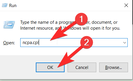 Press Windows+R to open the Run program on the bottom right of your screen. Once it opens, you need to type ncpa.cpl and then click on OK.