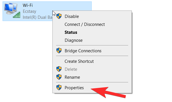 In the Properties section, you will see the items used by the network to connect to the internet. Scroll till you see Internet Protocol Version 4 (TCP/IPv4), select it, and then click on Properties.