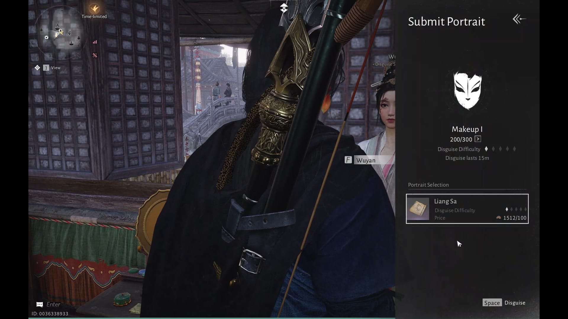 Meet Wuyan at the Disguise Shop and ask her to disguise you as Liang Sa.