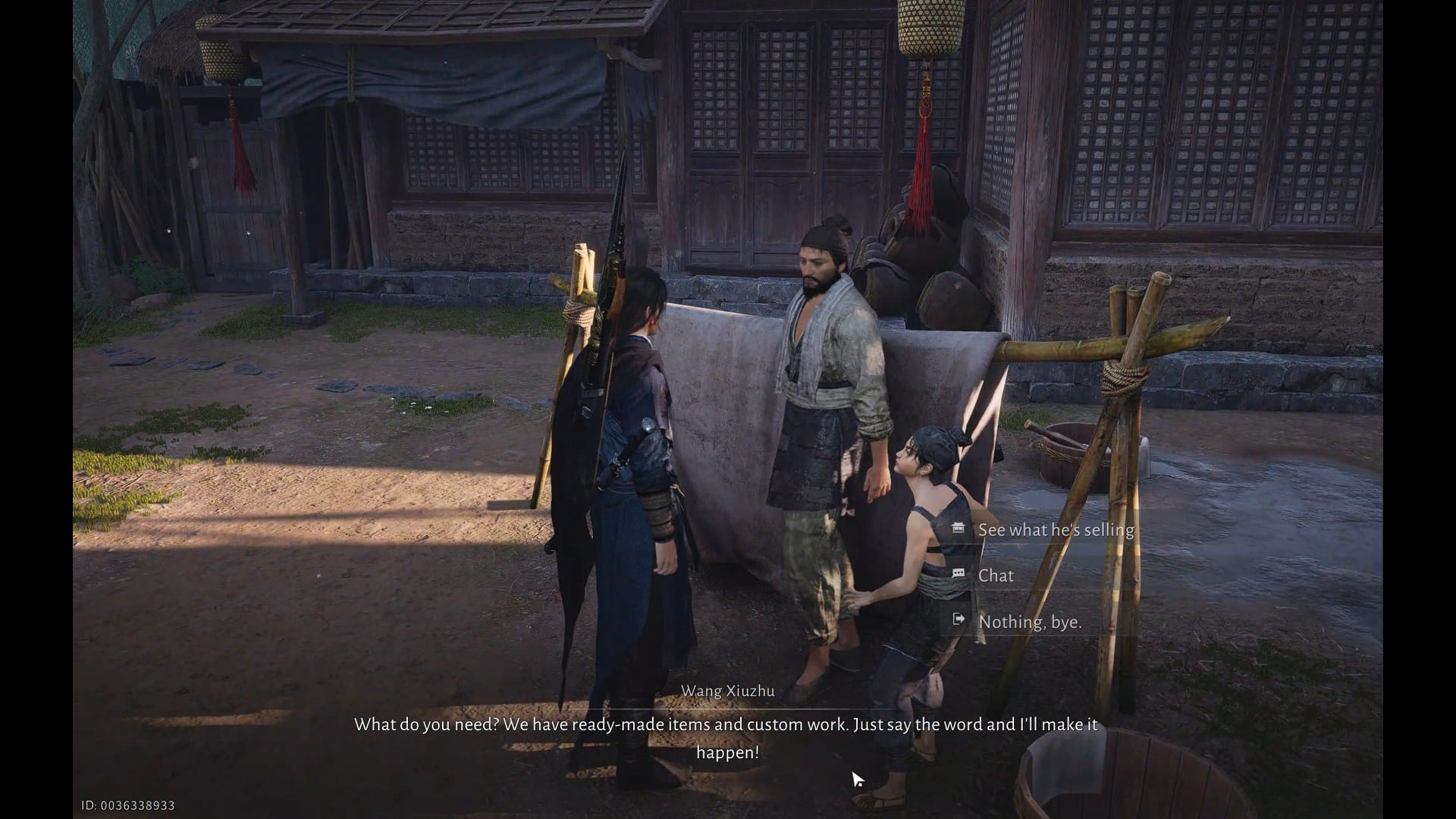 Near the market inside the camp, eavesdrop on Liang Sa and Kuang Anping discussing Beast Reverie.