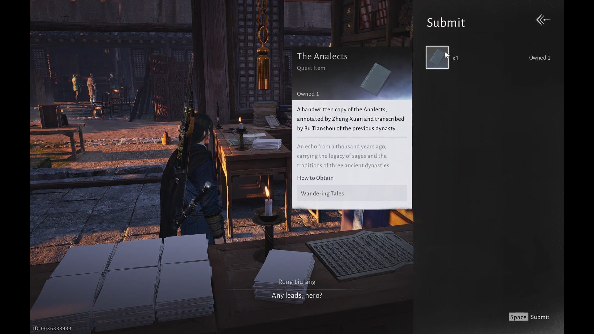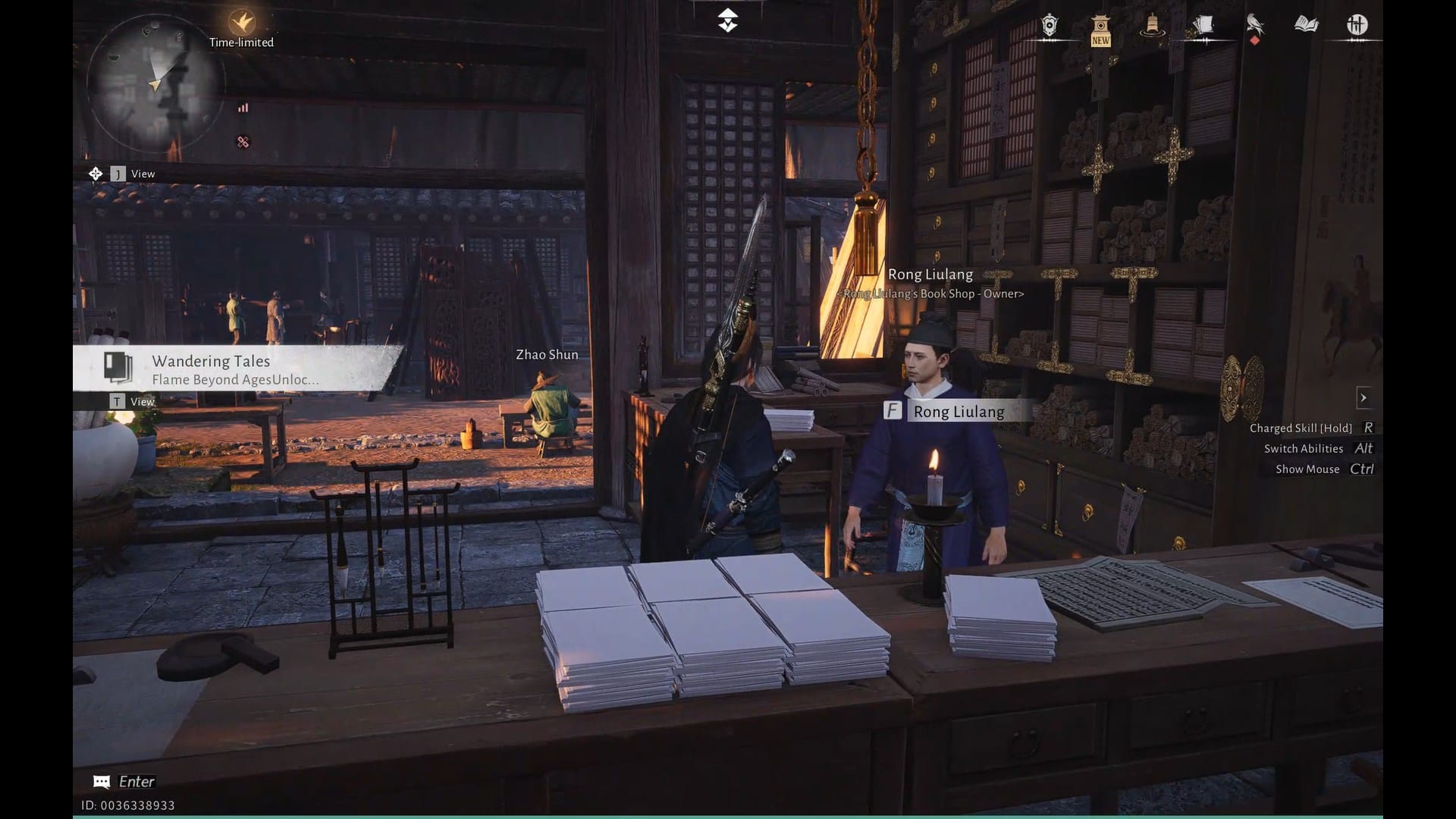 Begin the Wandering Tale by visiting Rong Liulang’s Book Shop at East Cross Street in the Fairgrounds, Kaifeng. Speak with him to trigger the tale.