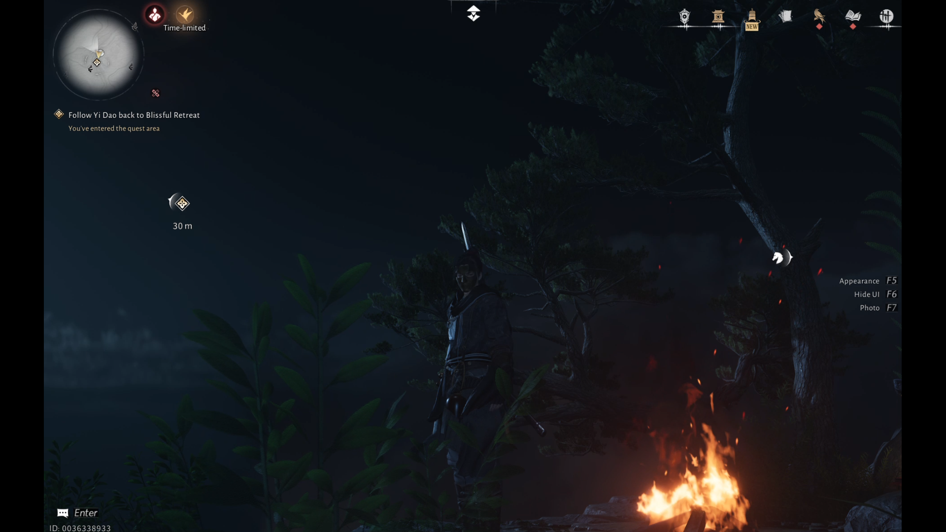 After the cutscene, follow Yi Dao back to Blissful Retreat.