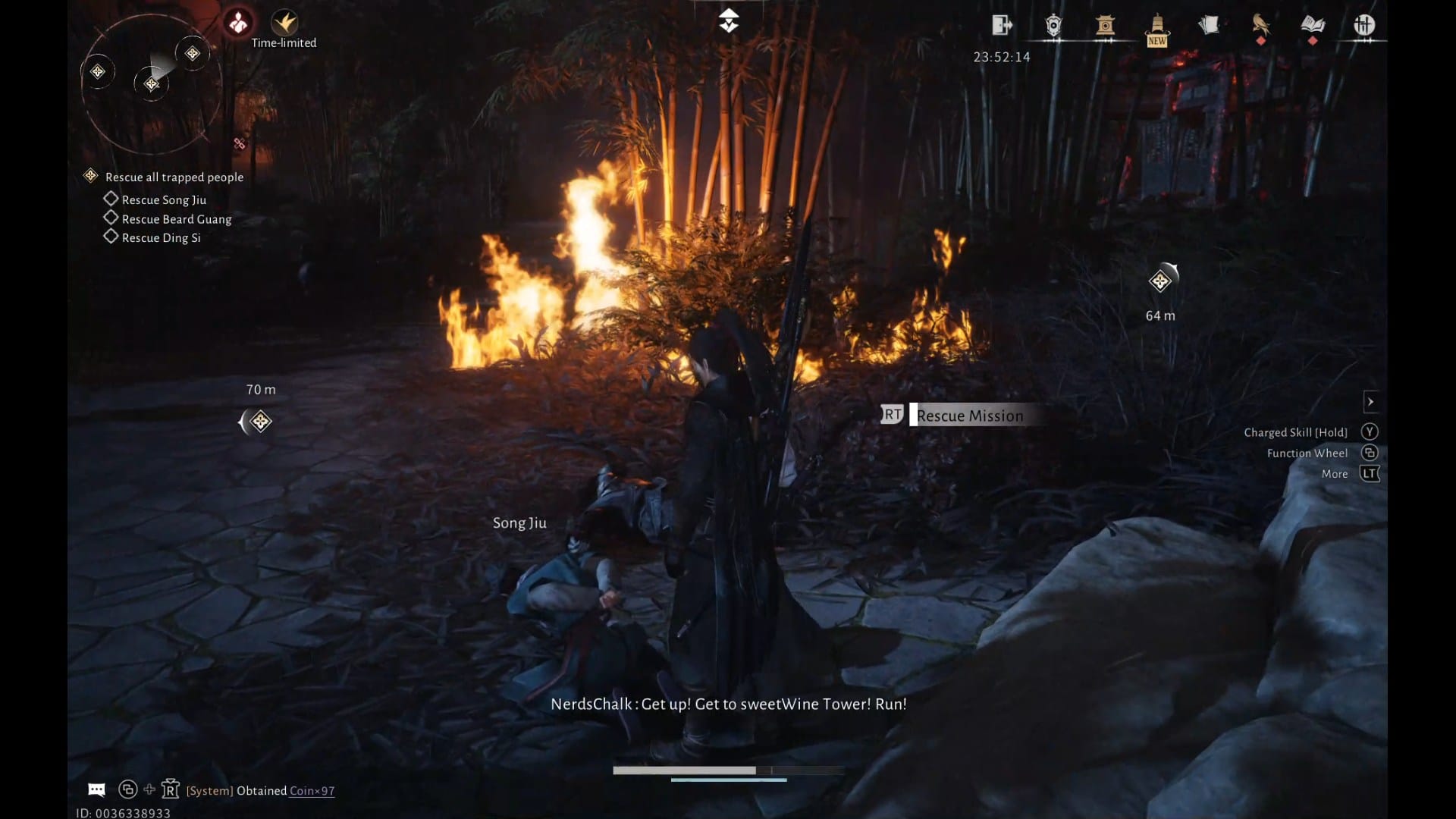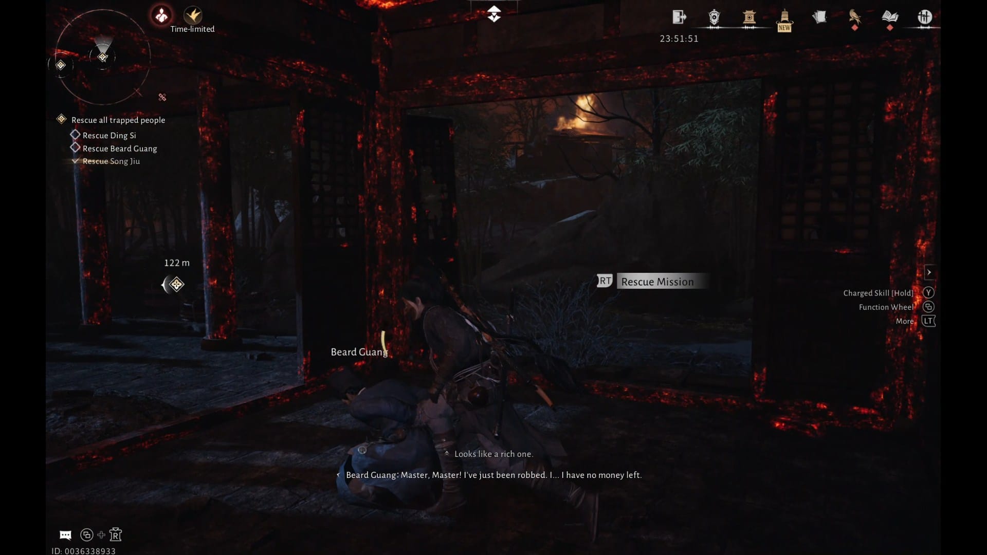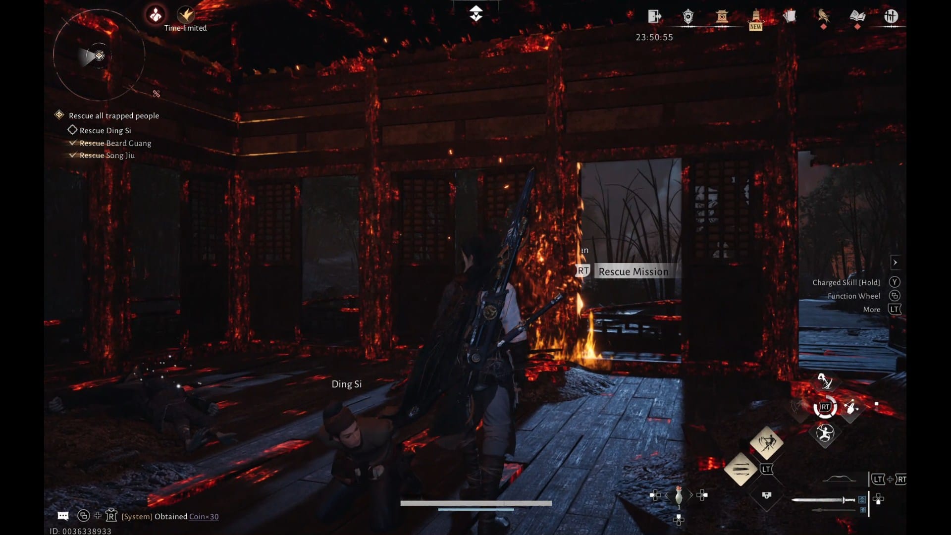 Defeat the enemies. Then find and rescue all three trapped people - Song Ju, Beard Guang, and Ding Si.