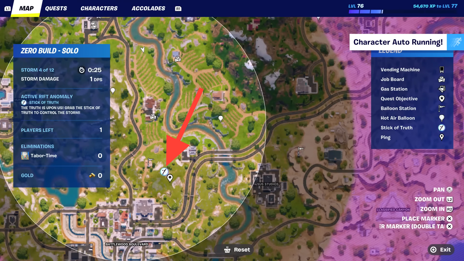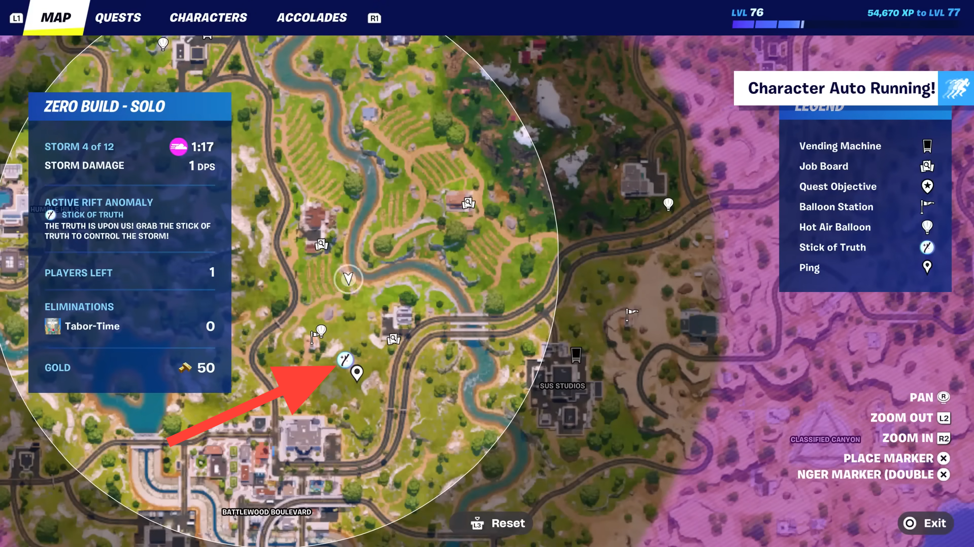 In Fortnite Chapter 7, the Stick of Truth isn’t found through regular chest loot or random floor drops. Instead, it’s tied to a unique Rift Anomaly that activates mid-match. When the “Stick of Truth” anomaly appears, a clear marker is placed on the map, revealing its exact location to all players, turning it into a highly contested objective rather than a lucky find.