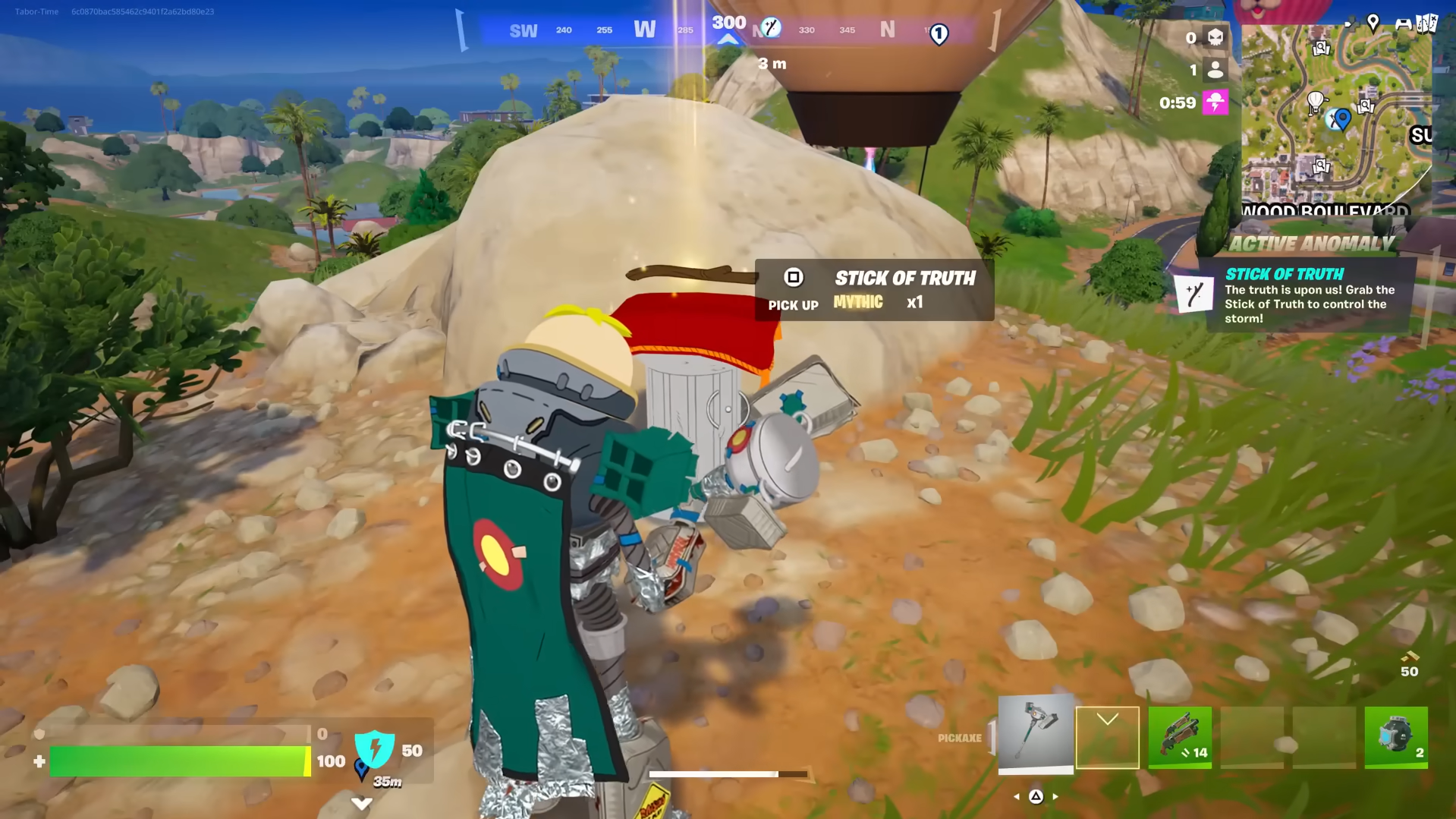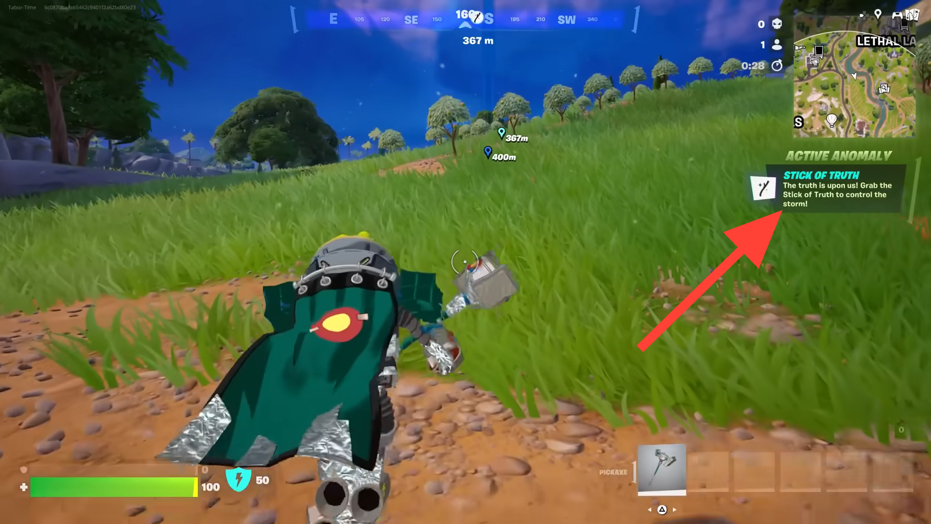 Watch for the Rift Anomaly message in the middle of the match. The Stick of Truth anomaly usually only spawns after the third storm circle closes, so keep an eye out from that point onward.