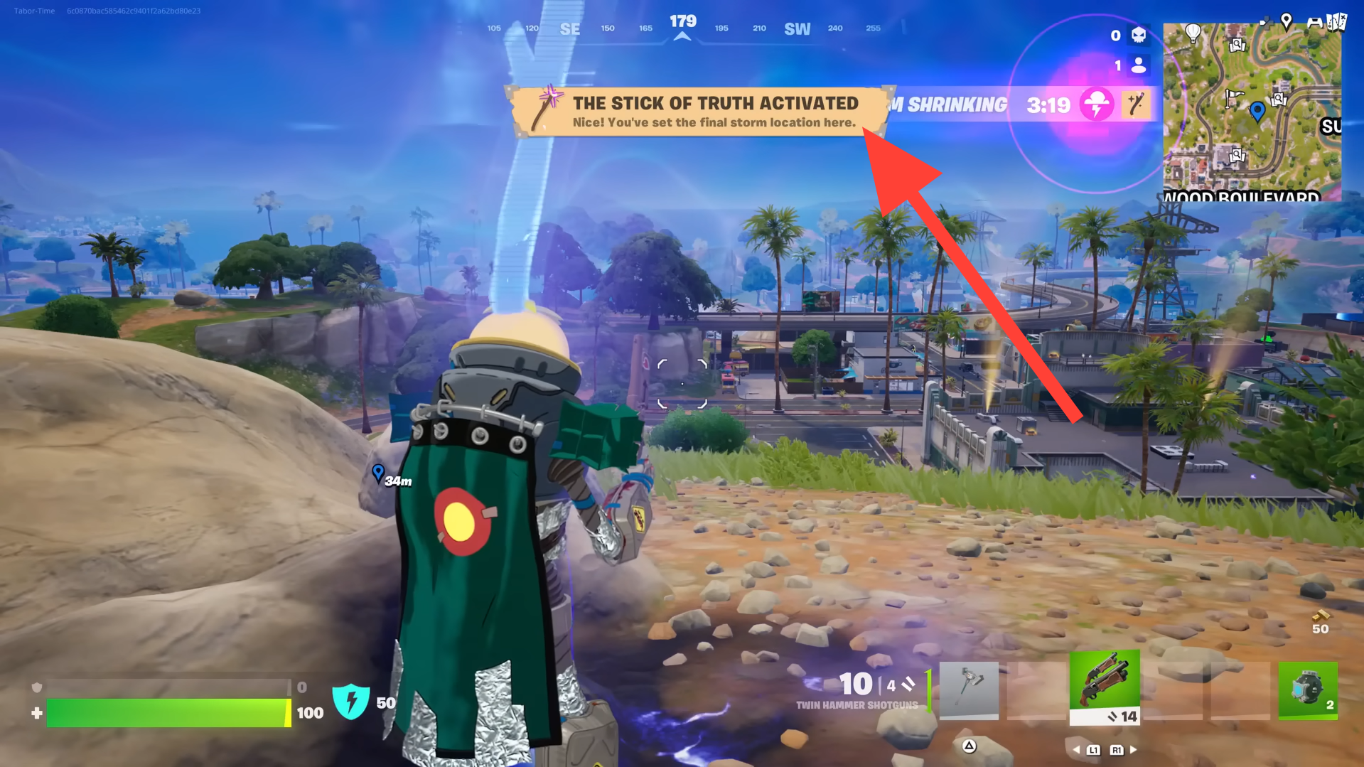 When activated, it moves the final storm circle to your current location. Image credits: Epic Games / YouTube: Tabor Hill