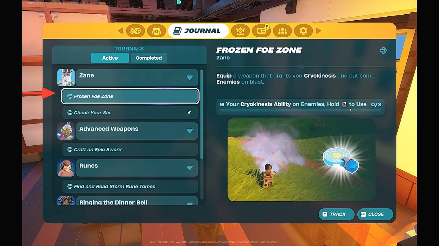 Frozen Foe Zone is a part of the Zane quest in Fortnite LEGO Ninjago. In this task, you have to equip a weapon with a Cryokinesis relic and use it to blast some enemies.