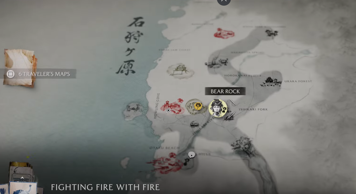 Open your in-game map and look for Bear Rock Cave in the vicinity of the Yotei Grasslands or Ishikari Plain region, depending on your game progression.