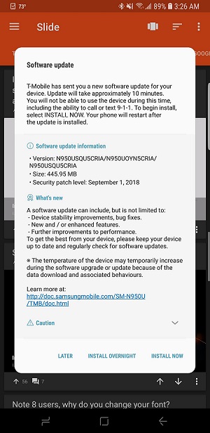 Some users on Reddit have reported getting the update which should bump the software version on the phone to N950USQU5CRIA. While the changelog only mentions the new build includes the September security patch (we’re in October, T-Mobile), users note the new build brings two new features.